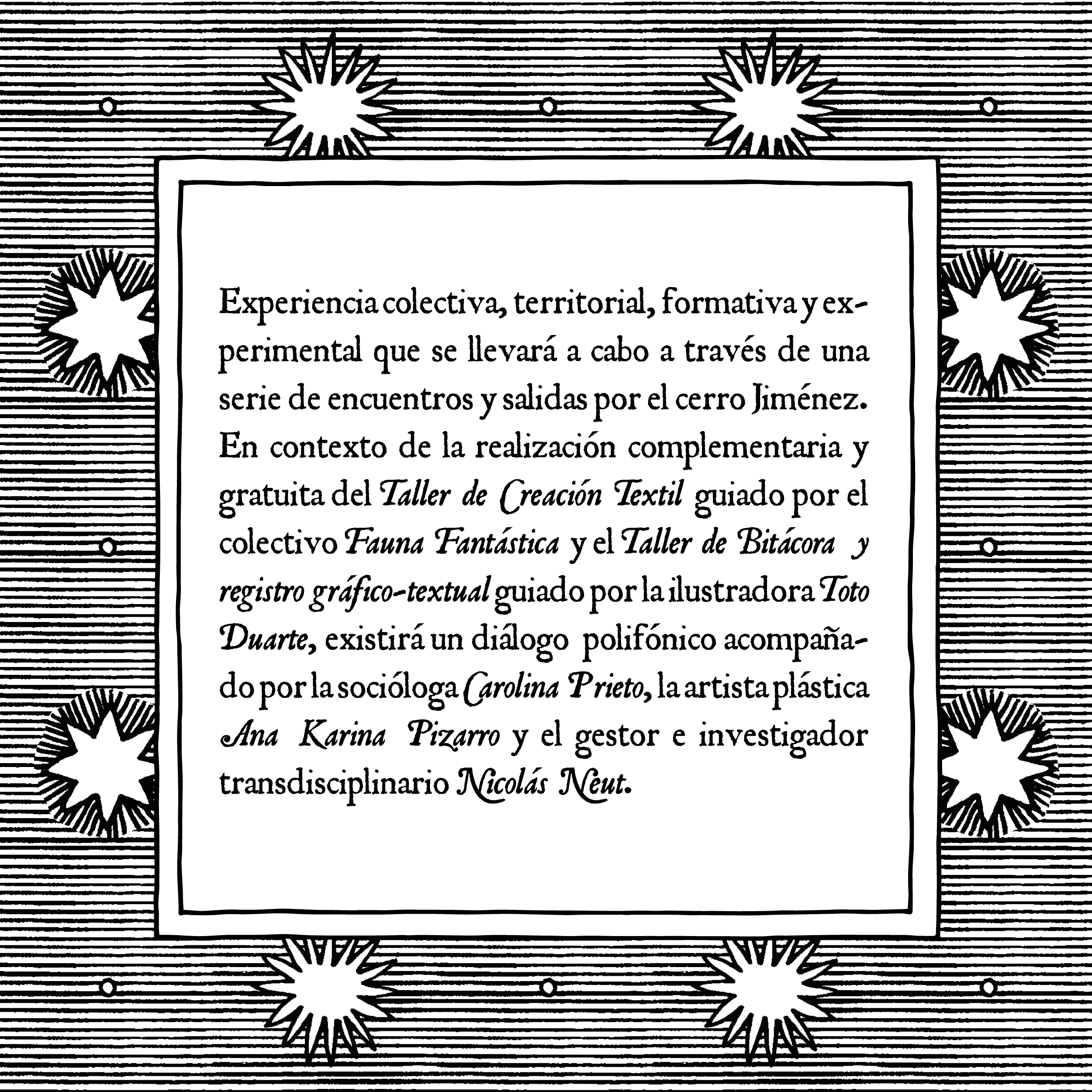 , laboratorio interdisciplinario de artes gráficas, textiles y reflexión cultural guiado en